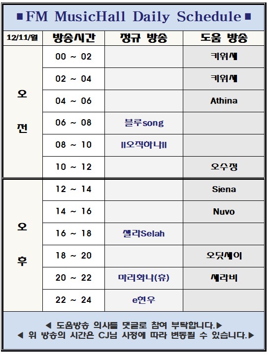 2023년 12월 11일 (월) 방송 ♬ 시간표